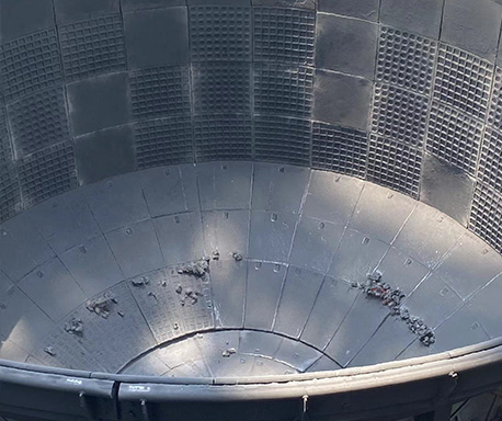 新型干熄焦焦罐襯板采用模具成型后高溫固化而成,呈塊體結構,與鋼結構框架通過錨固件固定連接。新型襯板與傳統襯板相比,具有更好的密封性和隔熱性,可以有效地阻止紅焦的顯熱損失和空氣的侵入。
